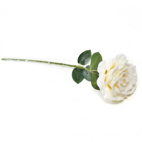 Rosa artificiale bianca innevata.Dal gambo lungo è alta 52cm