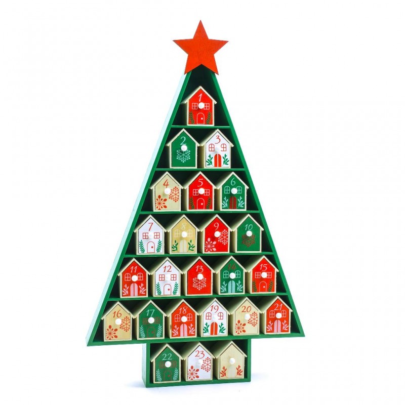 CALENDARIO AVVENTO ALBERO VERDE cm38x62h MATERIALE LEGNO VERNICIATO