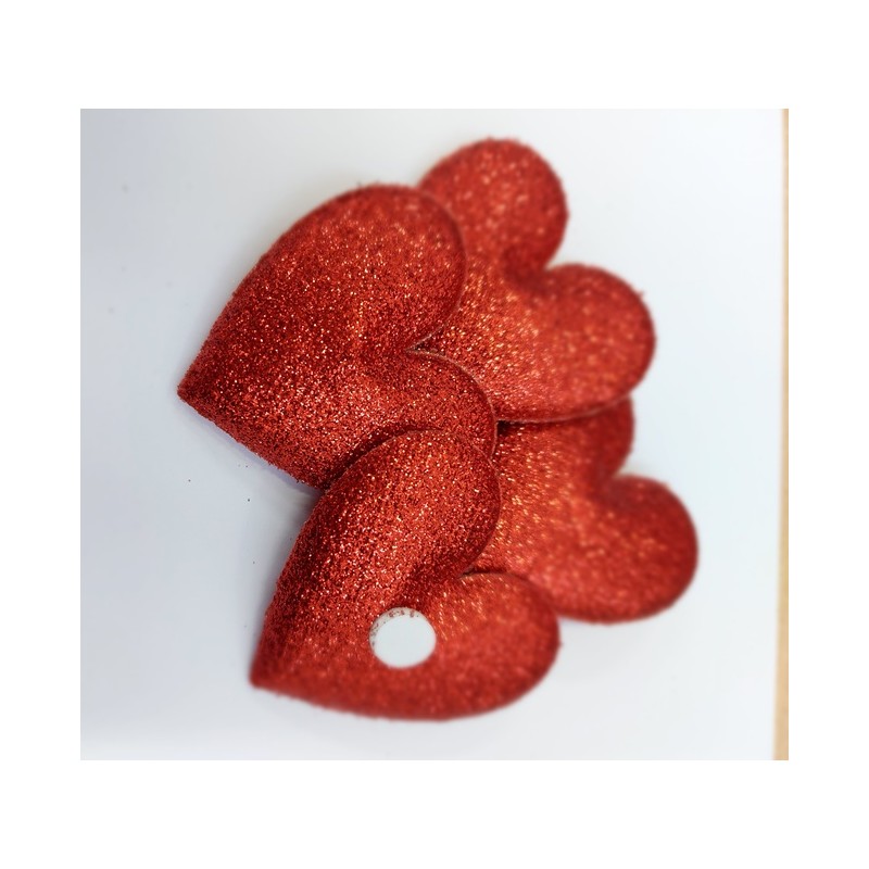 ---SET 4 CUORI ROSSI GLITTER 5cm adesivo