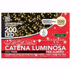 FILO 200 LUCI LED BIANCO CALDO 8 GIOCHI USO ESTERNO/INTERNO FILO VERDE 11mt Tot.