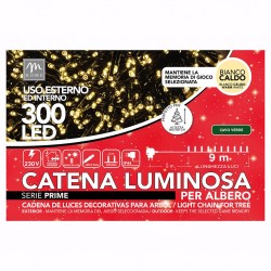 FILO 300 LUCI LED BIANCO CALDO 8 GIOCHI USO ESTERNO/INTERNO FILO VERDE 14mt Tot.