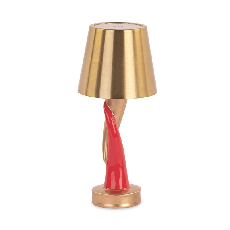 LAMPADA A FORMA DI CORNETTO ROSSO E ORO H.cm24.5 CON SCATOLA REGALO