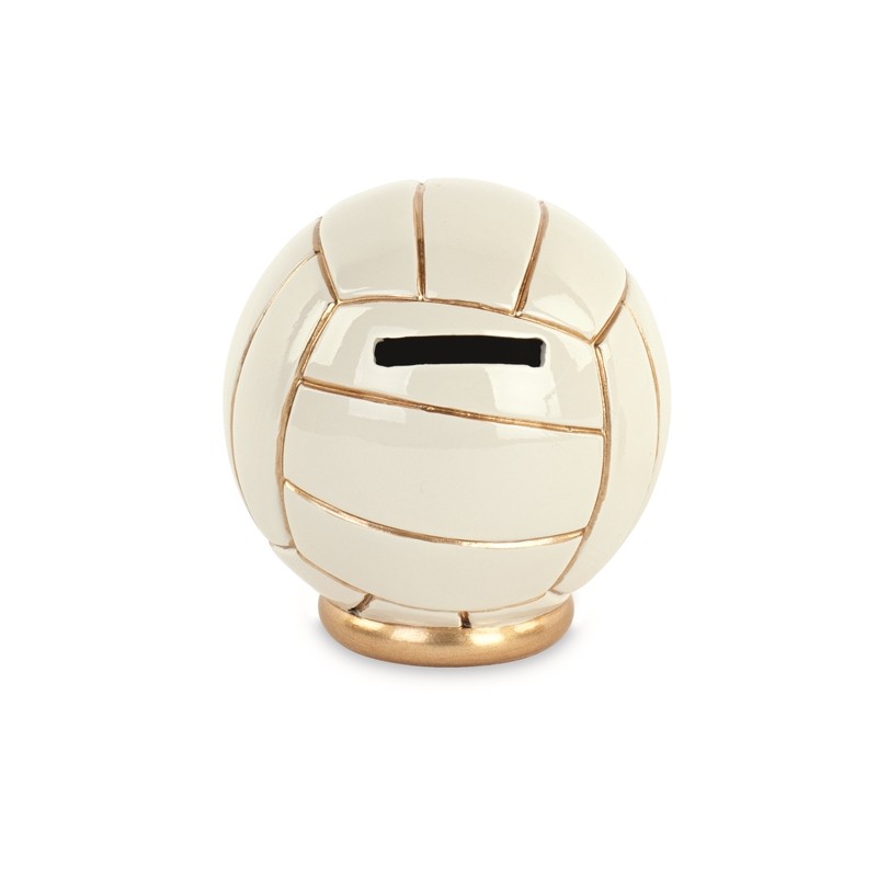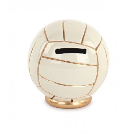 SALVADANAIO PALLONE DA PALLAVOLO BIANCO E ORO D.cm 8x8.5 CON SCATOLA REGALO