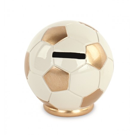 SALVADANAIO PALLONE DA CALCIO BIANCO E O RO D.cm 8x8.5 CON SCATOLA REGALO