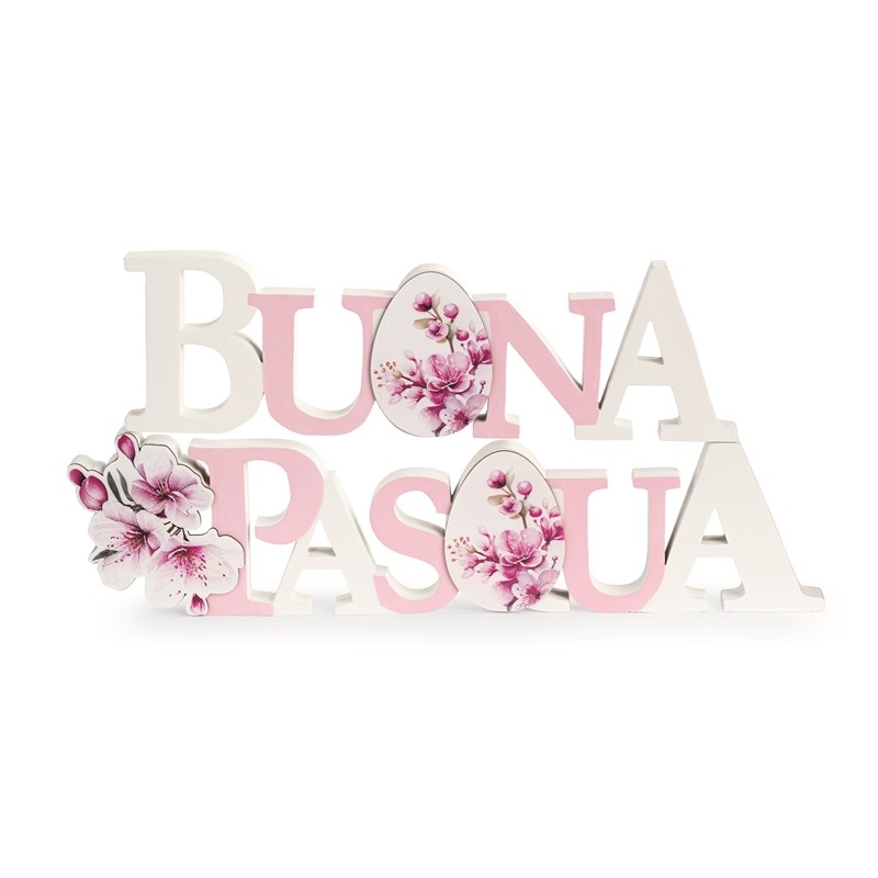 ---SCRITTA BUONA PASCQUA IN LEGNO BIANCA L50h12cm