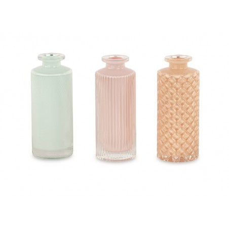 ---SET 3 VASETTI VETRO ROSA-ACQUA-ARANCI d50h135mm