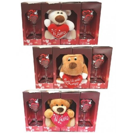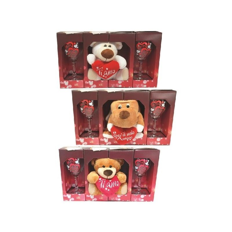 SET CALICI SAN VALENTINO CON PELUCHE 20cm ASSORTITOA ASCELTA CANE, ORSACCHIOTTO